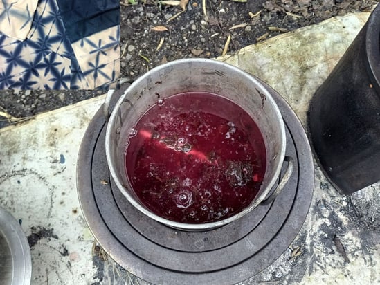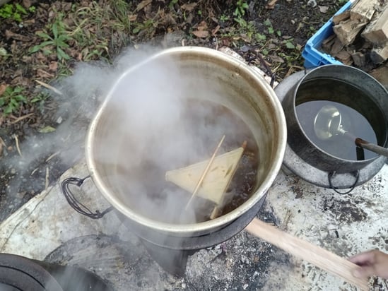 毎年この時期に、NPO法人水守の郷七ヶ宿が主催する山がっこでは「草木染め」をやっています。