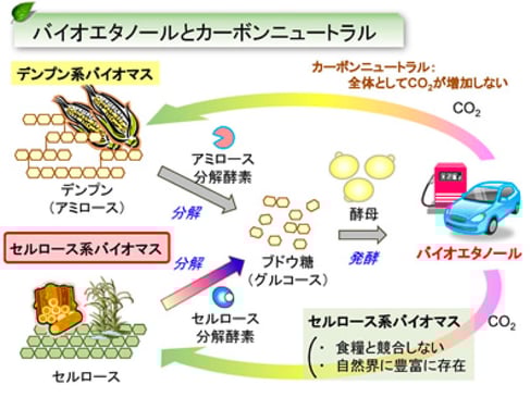 穀物などの食用バイオマスを使って製造するものを第一世代バイオ燃料と言います。