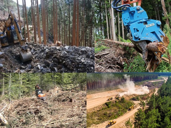 そして、林業を産業として成立させるために 近年は、大型機械が導入され機械が入れるように山を削って道を作っています。