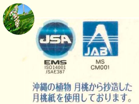 「沖縄の植物月桃から抄造(しょうぞう)した月桃紙を使用しております。」