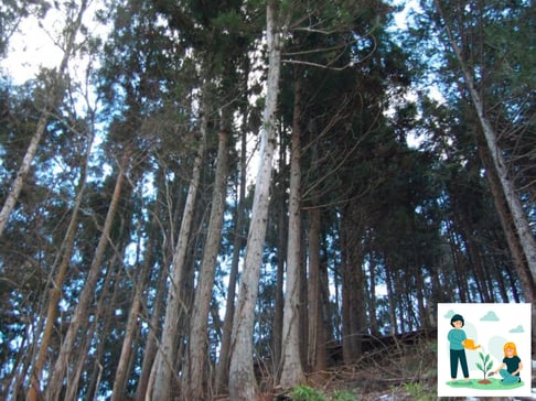 植林というのは木材の生産や森林の保全を目的として、木を植えることをさすのよ。