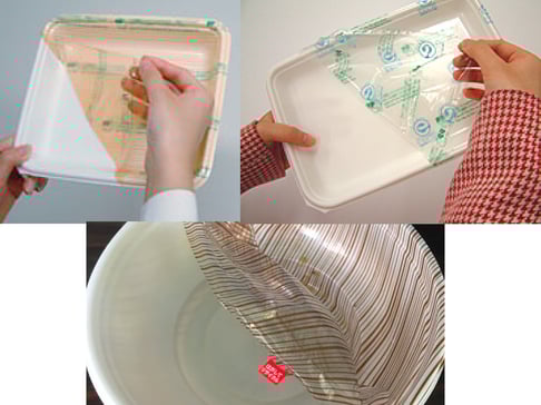 お弁当の容器にフィルムを貼って、捨てる時にはフィルムだけ剥がして捨てるというやり方です。