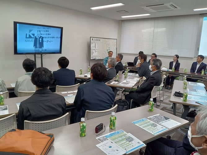 今年度は、カメイ株式会社さん(以下カメイさん)のバイオ燃料「サステオ」並びに風力発電事業について現地で説明を受けました。